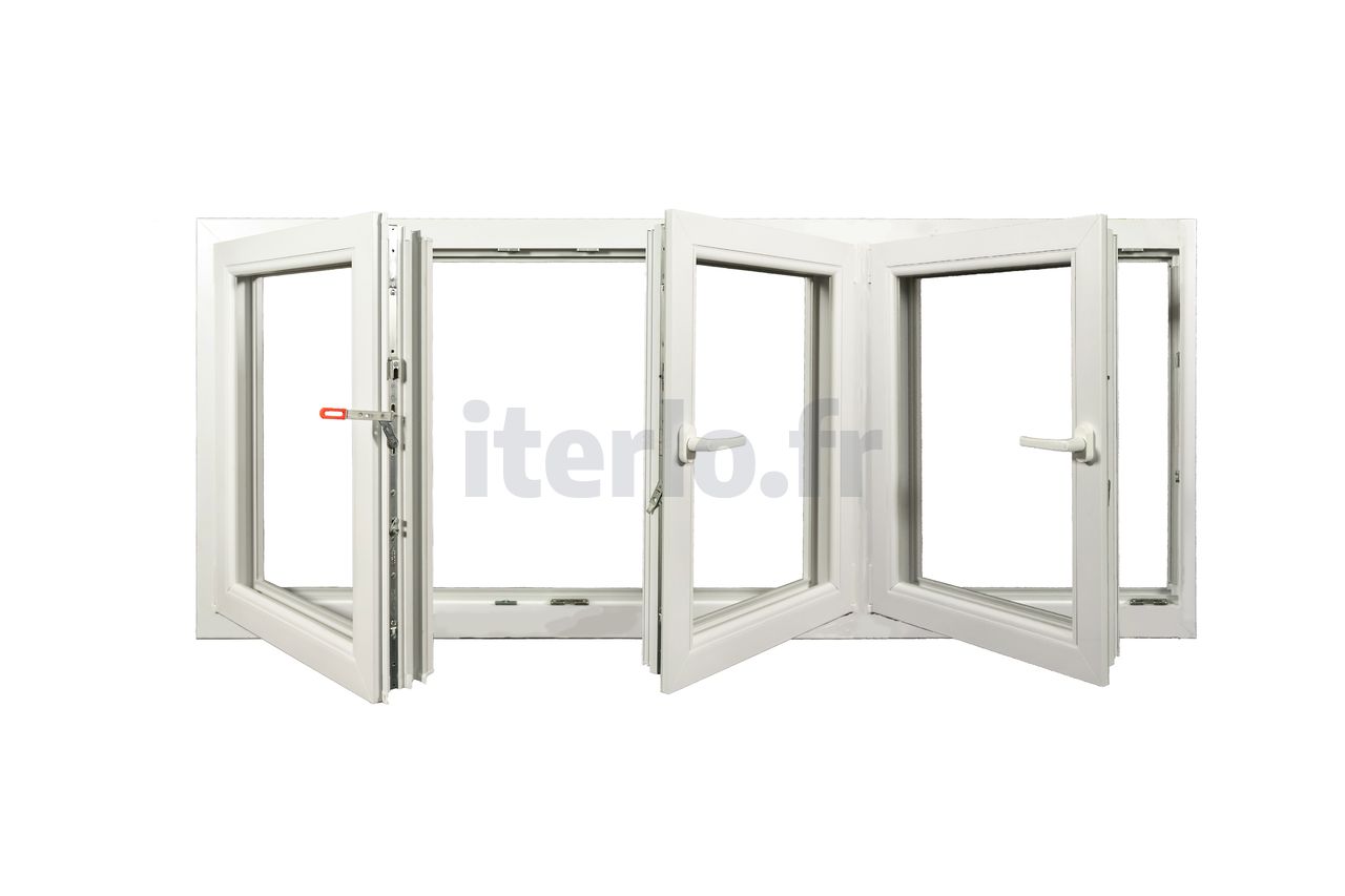 - 2ème vantail : Poignée à gauche, oscillo-battant, ouverture vers la droite.